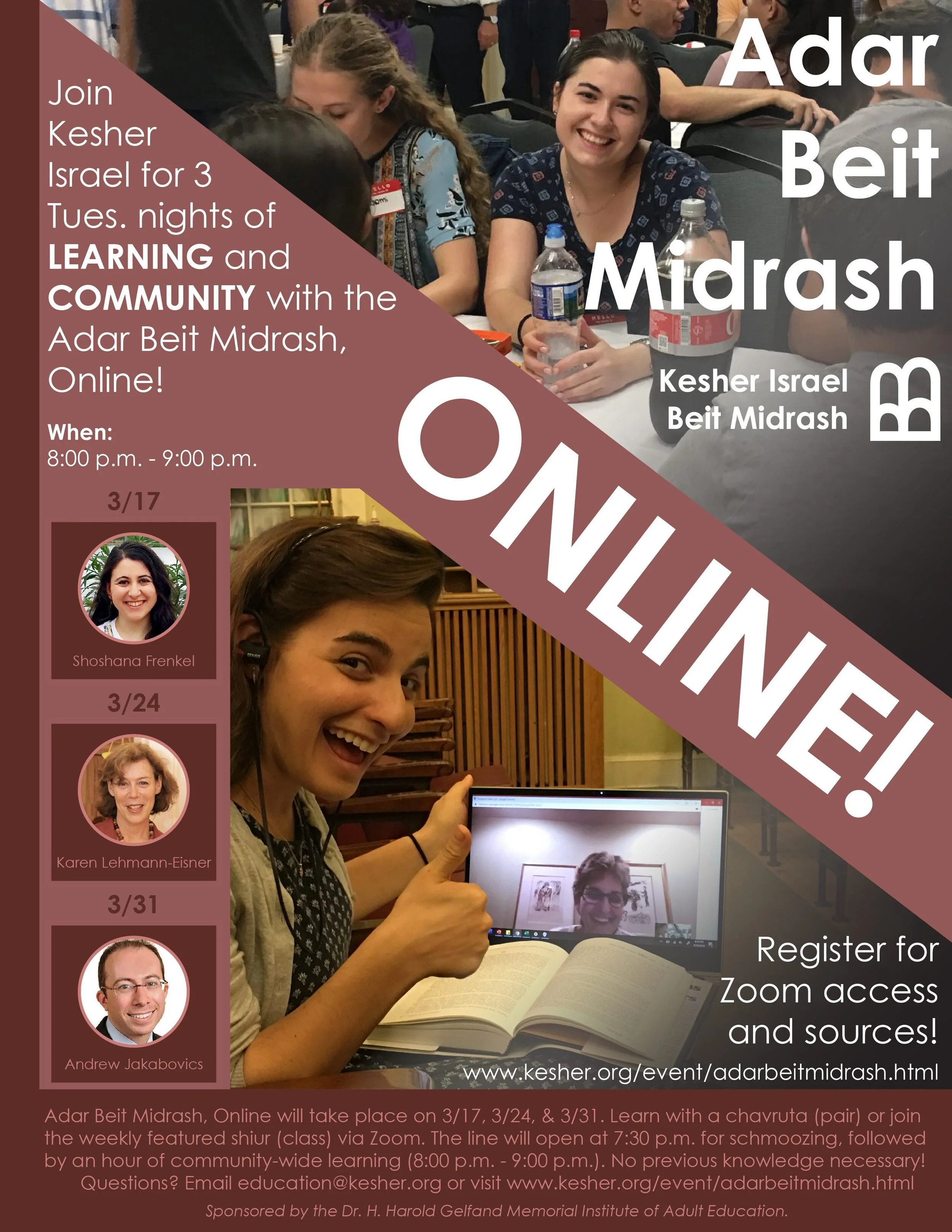 Background: Kesher Israel Congregation is a Modern Orthodox Synagogue in the Georgetown neighborhood of Washington, D.C.. In addition to prayer services, the community hosts many other forms of programming, including educational, social, and volunteer opportunities. Toward the end of March, 2020, the building closed indefinitely, and all in-person gatherings were postponed or canceled in accordance with health guidelines surrounding the COVID-19 pandemic. The digital landscape of community programming quickly evolved to meet the new needs of the congregants, through innovative programming like the “Online Pikei Avot Learning program.”